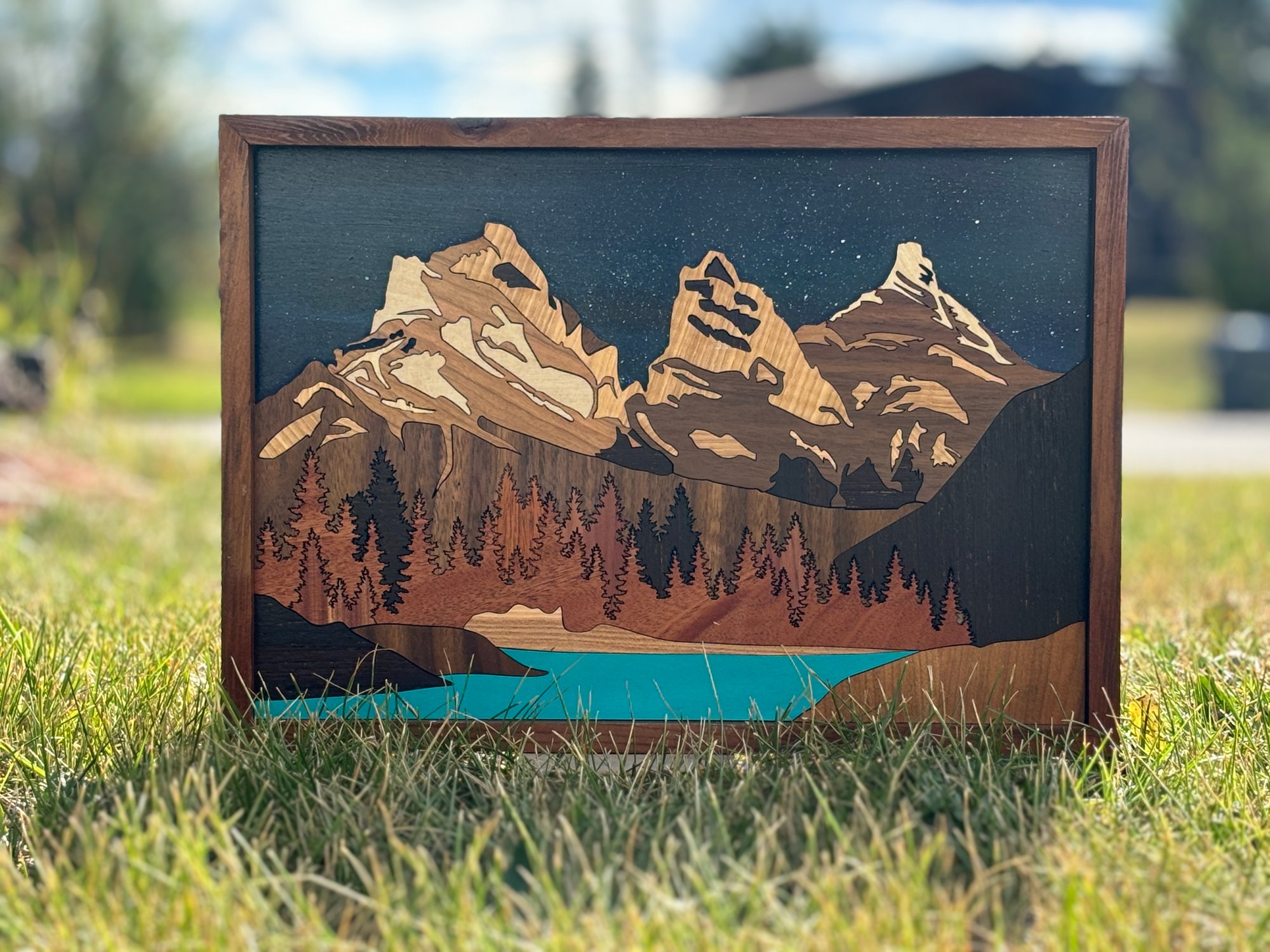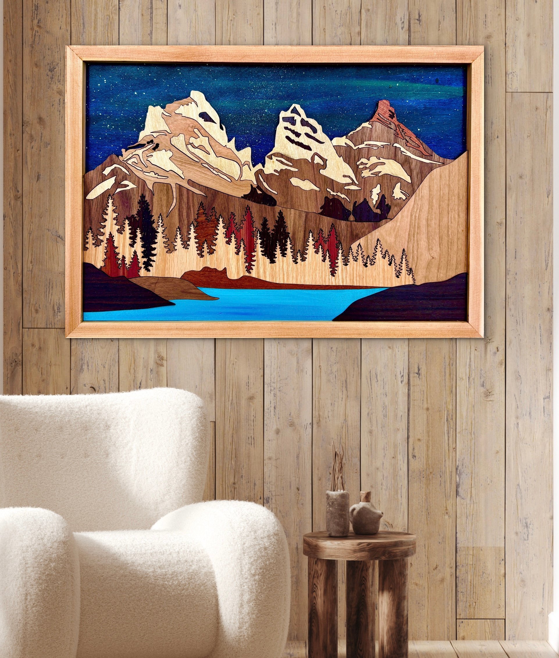 Meticulously designed and crafted with a blend of premium walnut, mahogany, cherry, oak, hickory, and birch plywood, this artwork is a testament to craftsmanship and passion. Each wood grain intricately reflects the rugged charm of the mountains, infusing your environment with warmth and tranquility.