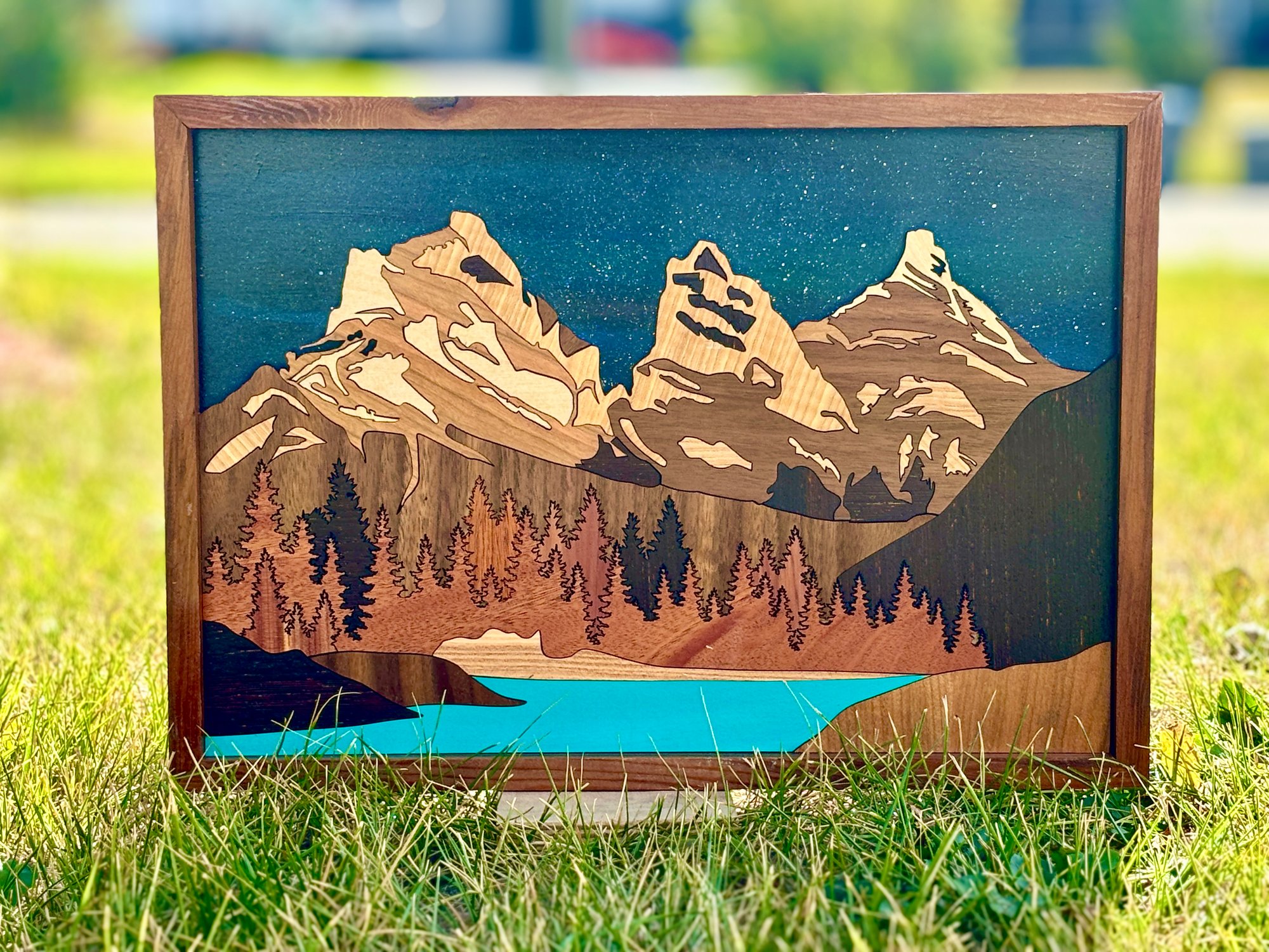 Three Sisters , Canmore , Alberta : Original Handmade wooden wall art